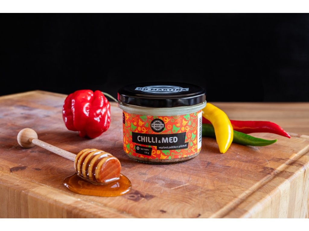 Složení: Vepřové maso 69 %, vepřová játra 14 %, sádlo, rajčatový protlak, chilli pasta, včelí med, cibule, česnek, sůl, pepř. Obsah soli 1,9 %.